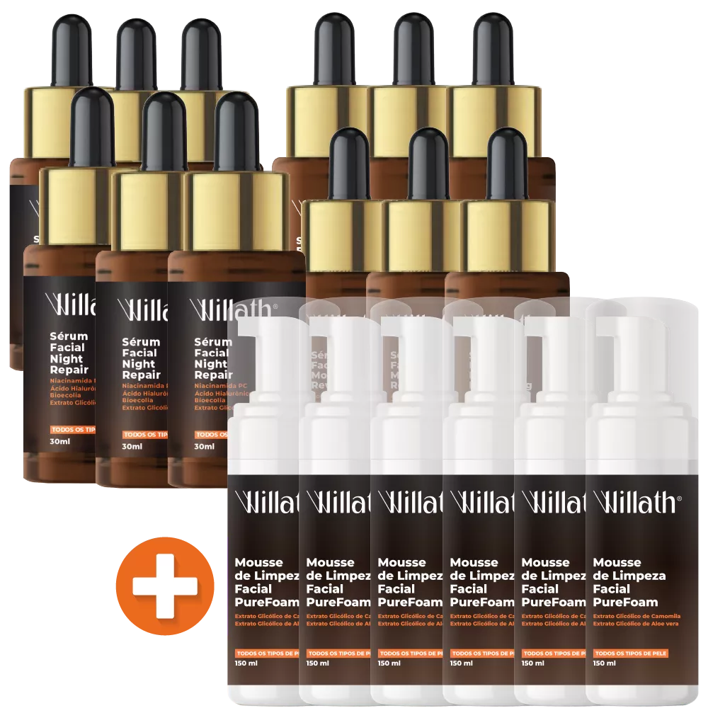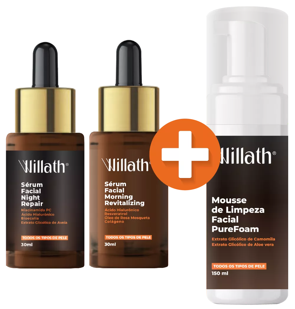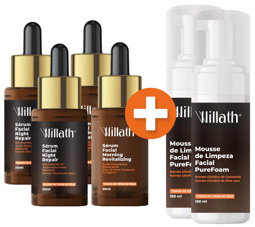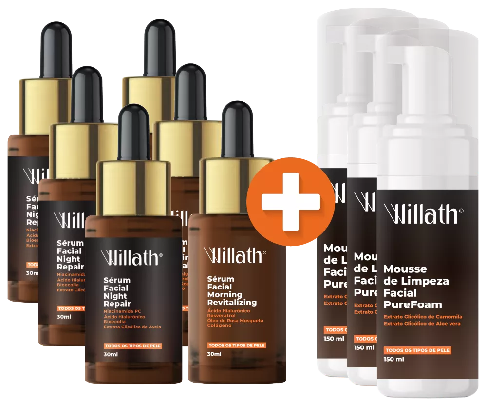Limpa, hidrata, clareia e repara tudo em uma rotina simples e eficaz. Descubra o poder de uma pele visivelmente mais jovem, firme e luminosa com Willath.